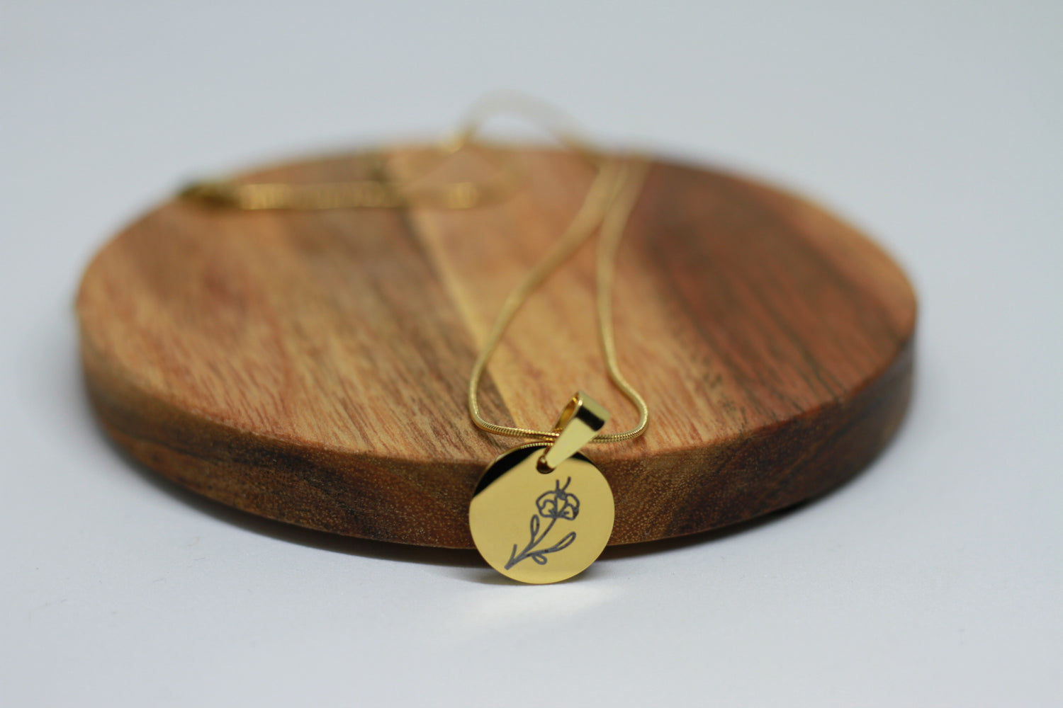 Edelstahlkette Geburtsblume Februar Primel Gold