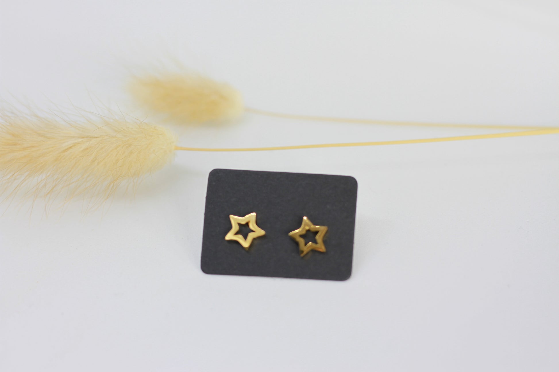Wunderschöne Ohrstecker aus Edelstahl 18 Karat vergoldet mit Sternmotiv. Die Ohrringe sind insgesamt ca. 1 cm breit. Das Set besteht aus zwei Ohrsteckern. Bei Fragen oder besonderen Wünschen melde Dich gerne bei mir.